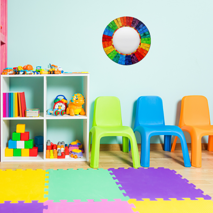 Add a splash of joy and color with our Round Rainbow Mosaic Wall Mirror. Handmade in Bali, each vibrant glass tile is carefully placed to create a dazzling rainbow pattern that brightens any space. Perfect for bathrooms, entryways, or cozy corners, this playful mirror brings both charm and personality to your home while celebrating colorful self-expression.